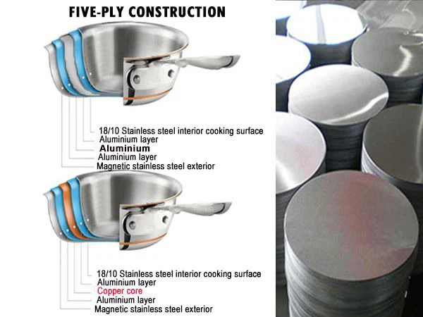Nous fabriquons également métaux plaqués à triple cercle, à 4 et 7 plis pour répondre aux différentes exigences de conception des ustensiles de cuisine.