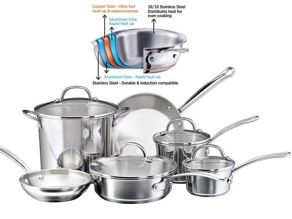 Les avantages de nos ustensiles de cuisine recouverts de cuivre 4 plis comprennent :