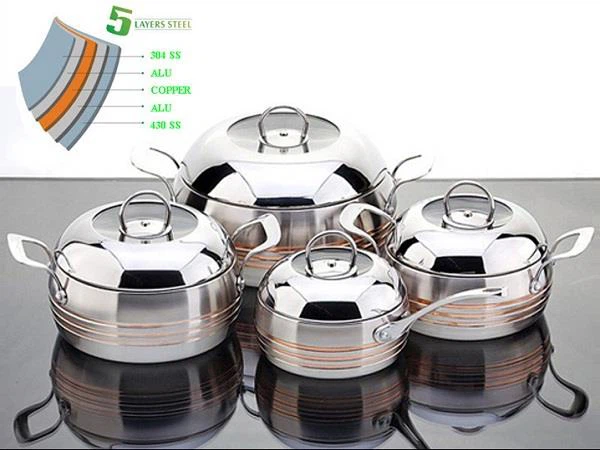 Batterie de cuisine en acier inoxydable à 5 épaisseurs